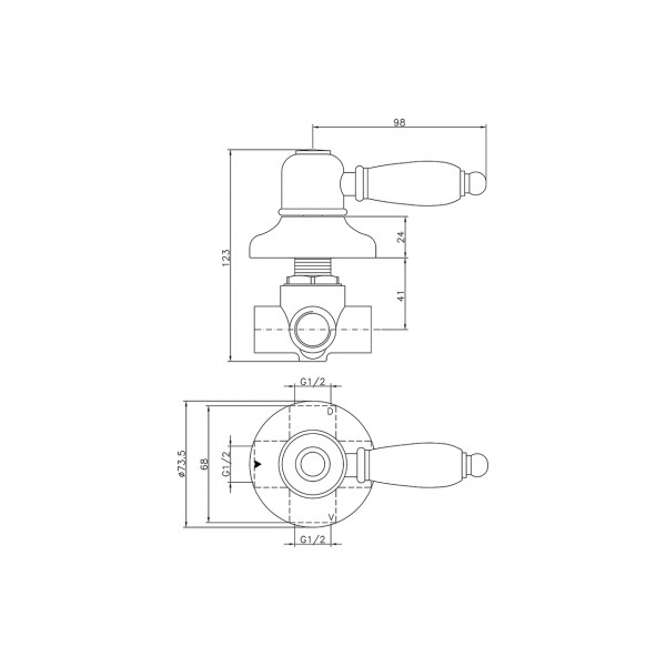 Inverseur dissimulé à 2 sorties, sorties F 1/2"