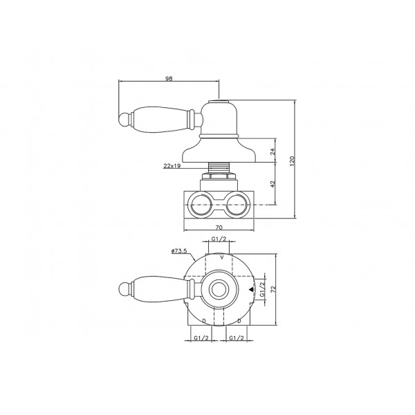 Inverseur dissimulé à 3 sorties, sorties F 1/2"