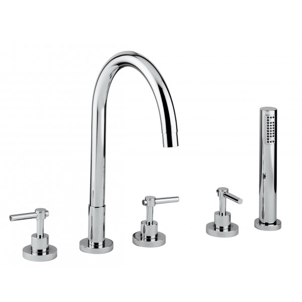 Le set avec douchette pour baignoire Gioira & Redi de la gamme Smart est proposé en finition chrome ou en finition nickel. Il est conçu pour être installé sur une baignoire 5 trous. Deux manettes (eau chaude, eau froide) servent à la température, la troisième pour passer facilement du bain à la douche. Son bec est légèrement courbé pour faire jaillir l'eau avec efficacité. Une douchette longiligne complète l'ensemble qui sera parfait pour vous accompagner au quotidien. Son design minimaliste et ses lignes sobres font de ce set un produit de type contemporain.