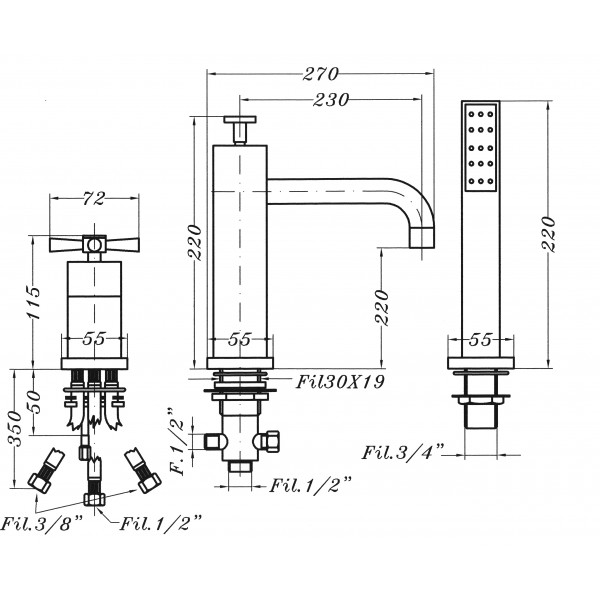 Set pour baignoire 3 trous Gioira & Redi gamme Trend