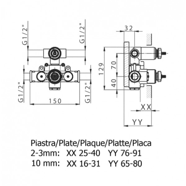 Partie externe thermostatique à encastrer à 2 sorties, avec interrupteur à 2 sorties, avec partie à encastrer, pour article