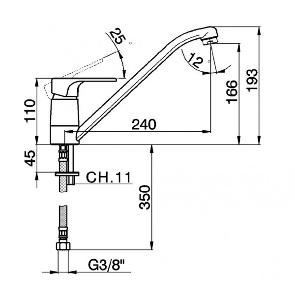 Le mitigeur pour évier Huber se compose de lignes droites et d'une finition en chrome. Une poignée de commande légèrement courbée pour le réglage de la température de l'eau complète un long bec au design sobre. Ce dernier est équipé d'une cartouche et d'un mousseur, il peut être orienté suivant vos besoins. Ce mitigeur s'installera sur tous les éviers monotrous. Son design simple lui permettra de trôner fièrement dans tous les styles de cuisine.