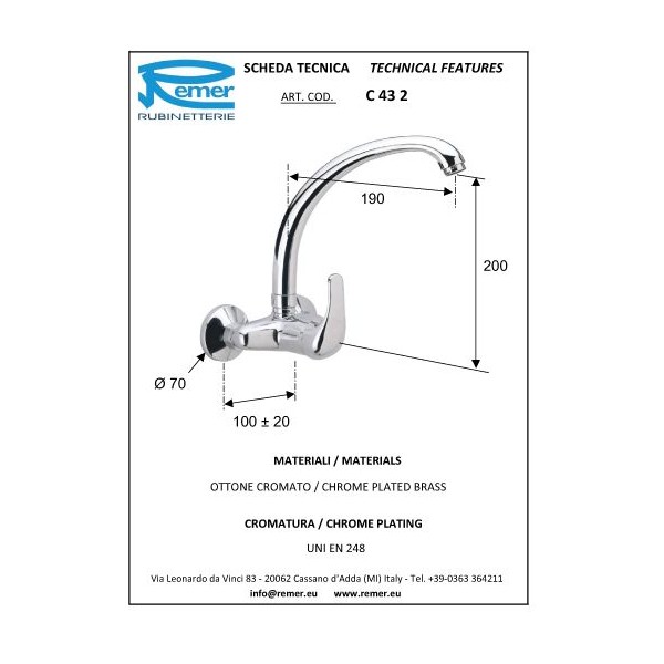 Mitigeur évier mural Remer gamme 100
