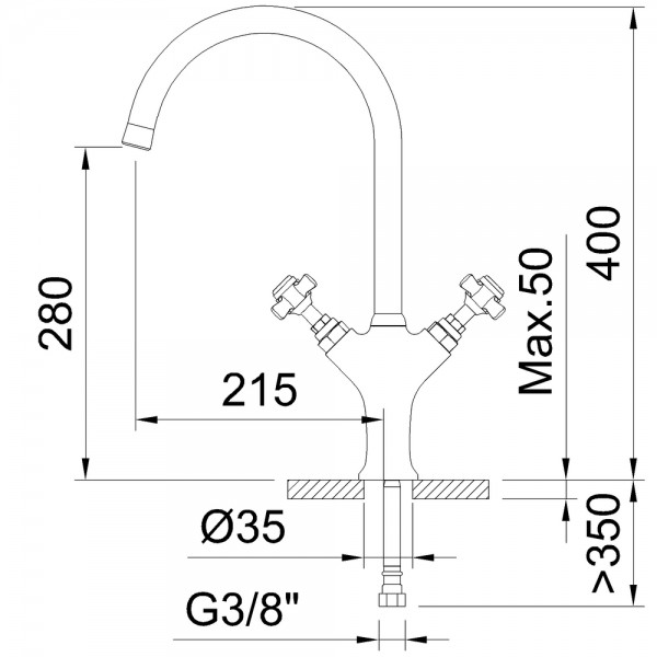 Mélangeur évier avec aérateur, bec orientable et flexibles de raccordement 3/8" >350mm