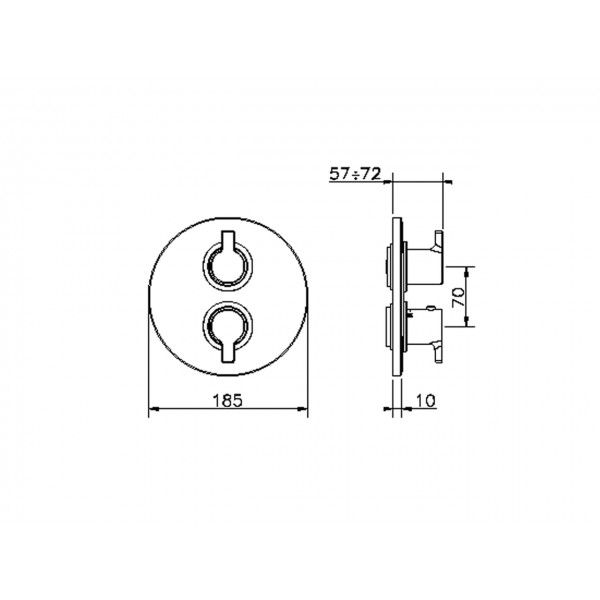Partie extérieure du mitigeur thermostatique de douche encastré, 1 sortie, avec vanne d'arrêt