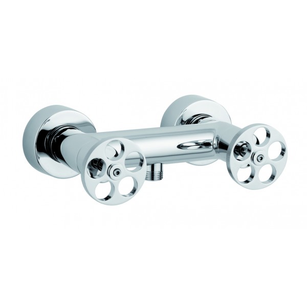 Ce mitigeur pour douche Ottone Meloda de la gamme Century dispose d'une finition en chrome ou d'une finition en nickel brossé. Il s'installe directement sur votre mur au-dessus de votre bac à douche. Élégant, il se compose de deux manettes cylindriques terminées par un disque à l'allure d'un volant, pour le réglage de l'eau. Il est à compléter par une douchette à fixer en-dessous. Ce mélangeur est équipé de têtes céramiques. Son design charmant habillera votre mur de salle de bains d'une touche industrielle agréable.