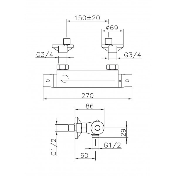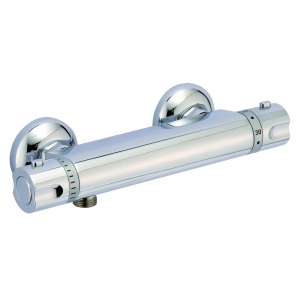 Ce mitigeur thermostatique pour douche Huber de la gamme Planet dispose d'une finition en chrome. Ses lignes élégantes et arrondies donnent du charme à l'ensemble. Le corps du mitigeur est prolongé par 2 manettes. Une des manettes sert à régler la température de l'eau très facilement puisqu'elle est complétée par une rondelle de graduation. La seconde manette sert à ajuster le débit de l'eau à vos besoins. Un flexible de douche viendra se fixer à l'embout à vis prévu à cet effet. Ce mitigeur s'installera au mur au-dessus d'un bac à douche dans tous les styles de salles de bain.