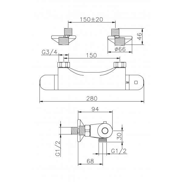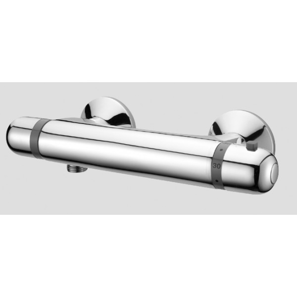Ce mitigeur thermostatique pour douche Huber de la gamme Sylt dispose d'une finition en chrome. Ses lignes élégantes et arrondies donnent du charme à l'ensemble. Le corps du mitigeur est prolongé par 2 manettes. Une des manettes sert à régler la température de l'eau très facilement puisqu'elle est complétée par une rondelle de graduation. La seconde manette sert à ajuster le débit de l'eau à vos besoins. Une douchette devra être fixée à l'embout à vis prévu à cet effet pour compléter l'ensemble. Ce mitigeur s'installera au mur au-dessus d'un bac à douche dans tous les styles de salles de bain.