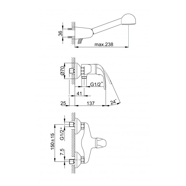 Ensemble Mitigeur Douche Mural Huber gamme Norma