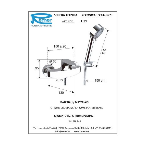 Mitigeur douche Remer gamme Class Line