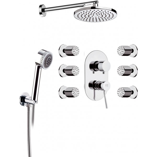 Mitigeur de douche à encastrer avec inverseur 3 voies avec 7 positions sur plaque à encastrer