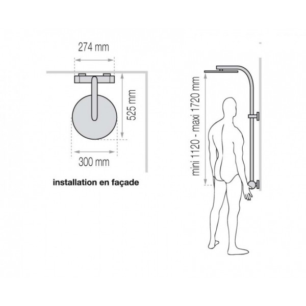 Pomme de tête large zone d'apersion Ø300 mm 2 jets : jet pluie et jet cascade
