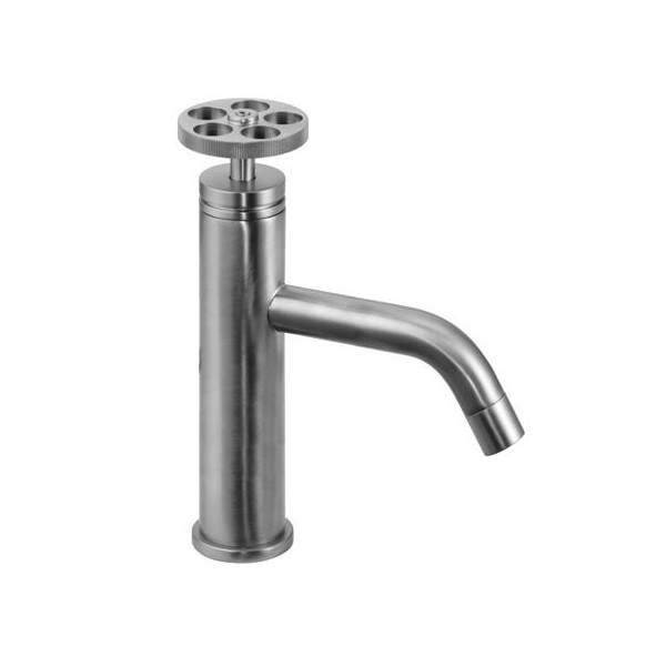 Ce mitigeur lavabo Ottone Meloda de la gamme Century est disponible en finition chrome ou nickel brossé. D'une hauteur totale de 22 cm, il se compose d'un corps cylindrique prolongé d'une manette type volant pour le réglage de l'eau. Un bec courbé complète avec charme ce mitigeur. Habillez votre univers avec ce mitigeur d'un design industriel agréable.