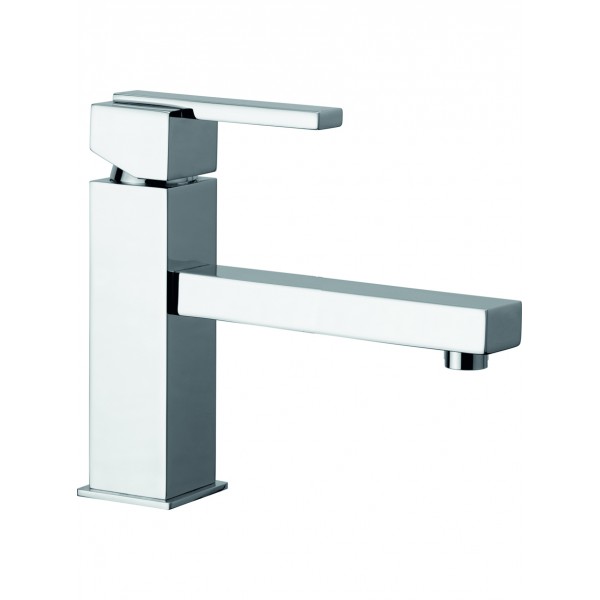 Le mitigeur lavabo Ottone Meloda de la gamme Riquadri est pourvu d'un long corps surmonté d'une poignée de commande à cartouche pour le réglage de l'eau. Un bec long termine agréablement le corps. Ce mitigeur s'installe sur tous les lavabos monotrou. Il est disponible en finition chrome ou en nickel brossé. C'est un mitigeur sobre aux lignes droites qui s'adaptera à toutes les salles de bains quel que soit le style.