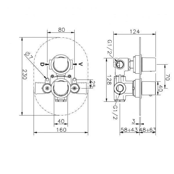 Mitigeur Thermostatique Encastré 2 Sorties