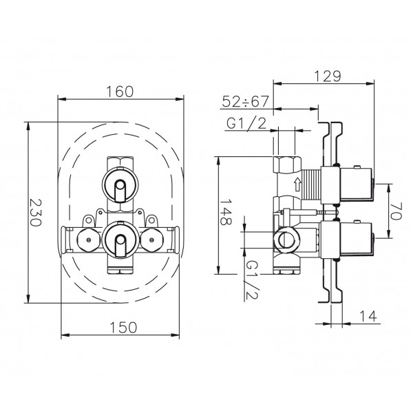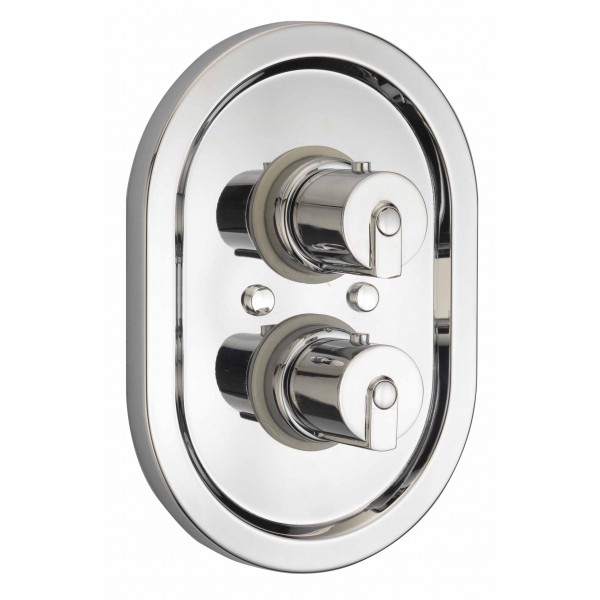 Le mitigeur pour douche Huber de la gamme Concealed se fixe au mur au-dessus d''un bac à douche. D'une finition réalisée en chrome, il propose un support mural de forme ovale et deux manettes cylindriques. Une manette sert à régler la température de l'eau, l'autre son débit. Il doit être associé à une pommre de douche ou une douchette pour un ensemble complet. Discret et sobre, ce mitigeur vous séduira par sa simplicité d'utilisation. Brillant, il embellira tous les styles de salle de bain.